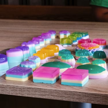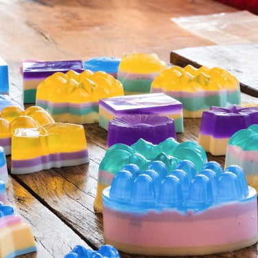 ♦ Naudosime kelias skirtingas spalvas muilo sluoksniuose